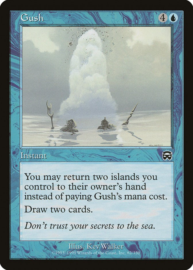 • Rules Text Contains: You may return two islands you control to their owner’s hand instead of paying Gush’s mana cost.