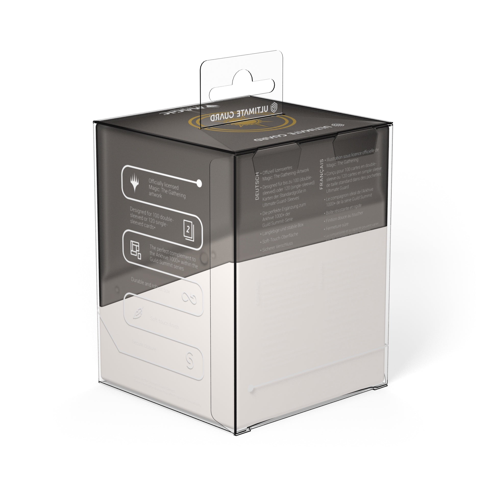 Ultimate Guard celebrates one of the most iconic and popular planes in Magic: The Gathering's history with the "Guild Summit" series: Ten elegant Boulder 100+ featuring the golden crest of each guild on the semi-transparent deck boxes, all with a silky soft-touch finish. The Boulder 100+ holds up to 100 double-sleeved cards, making it the perfect home for your two-color Commander deck! Don't miss out on the stunning Arkhive 1000+ Xenoskin from the "Guild Summit" series either, which is the perfect storage place for up to ten Boulder 100+.